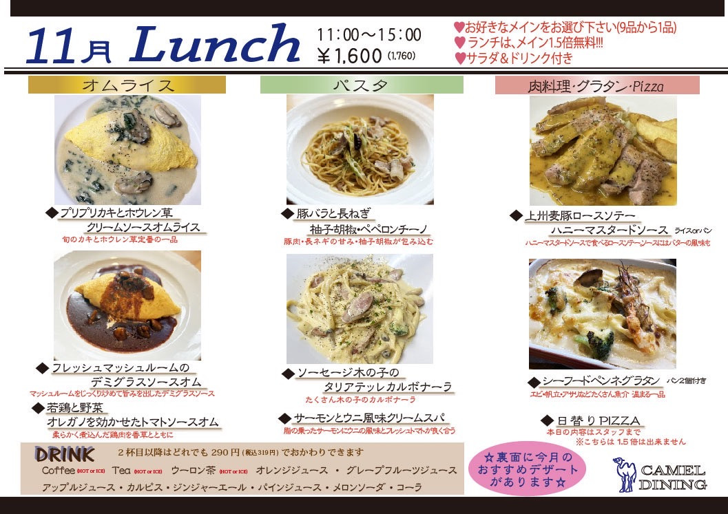11月ランチメニュー(11:00~15:00) ¥1,760(税込)