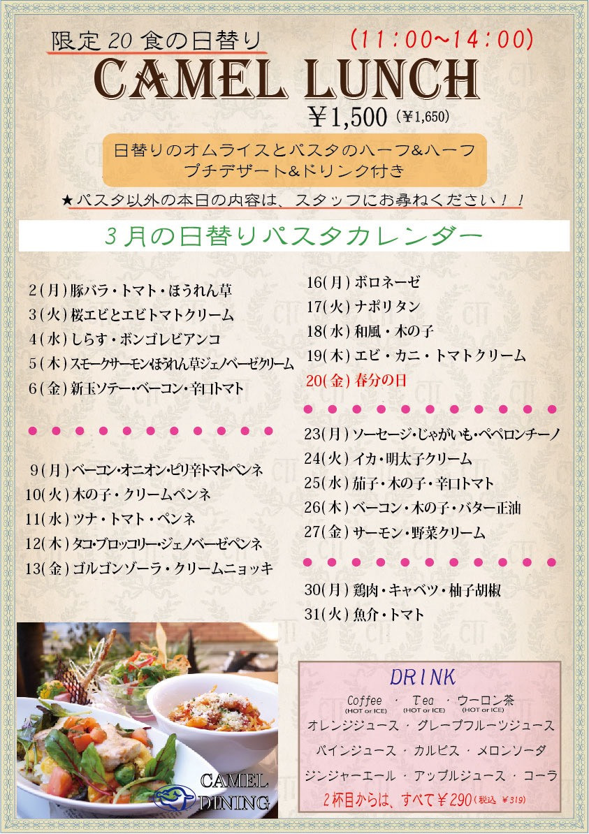 限定20食の日替わりCAMEL LUNCH(11:00~14:00) ¥1,650(税込)